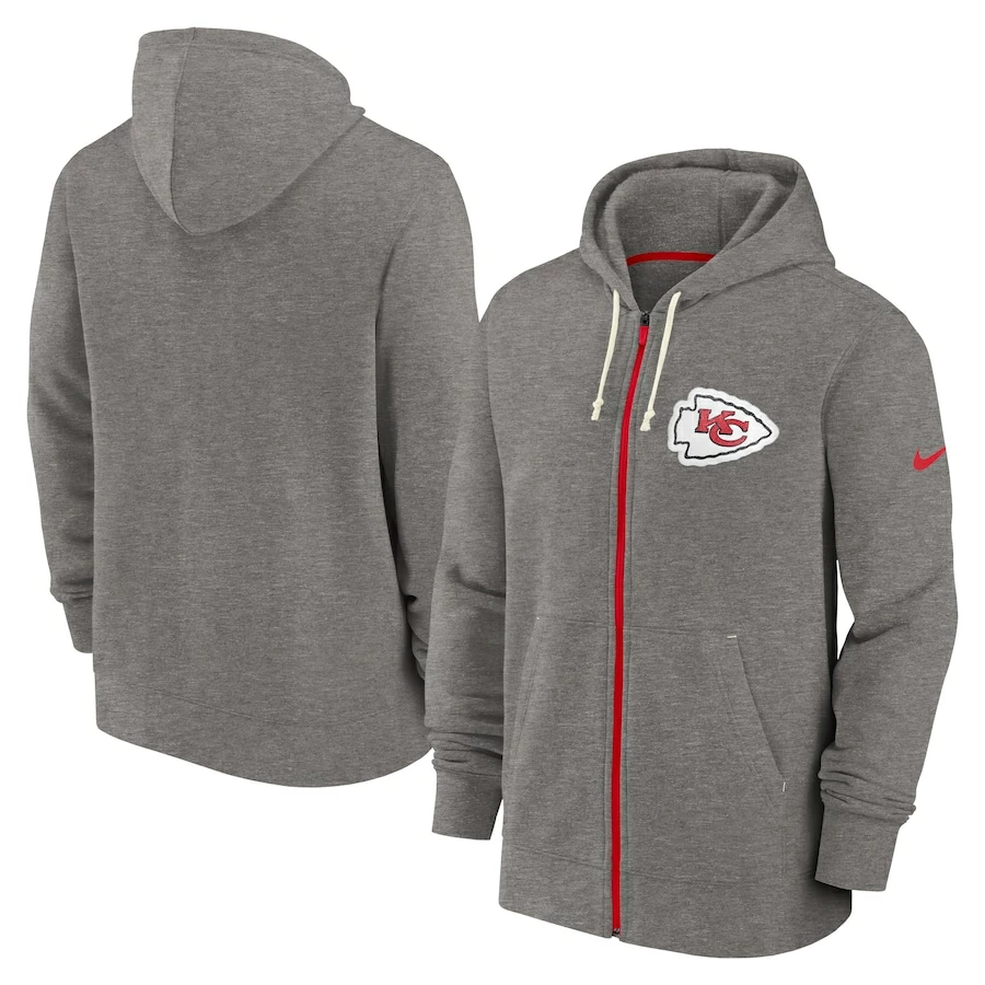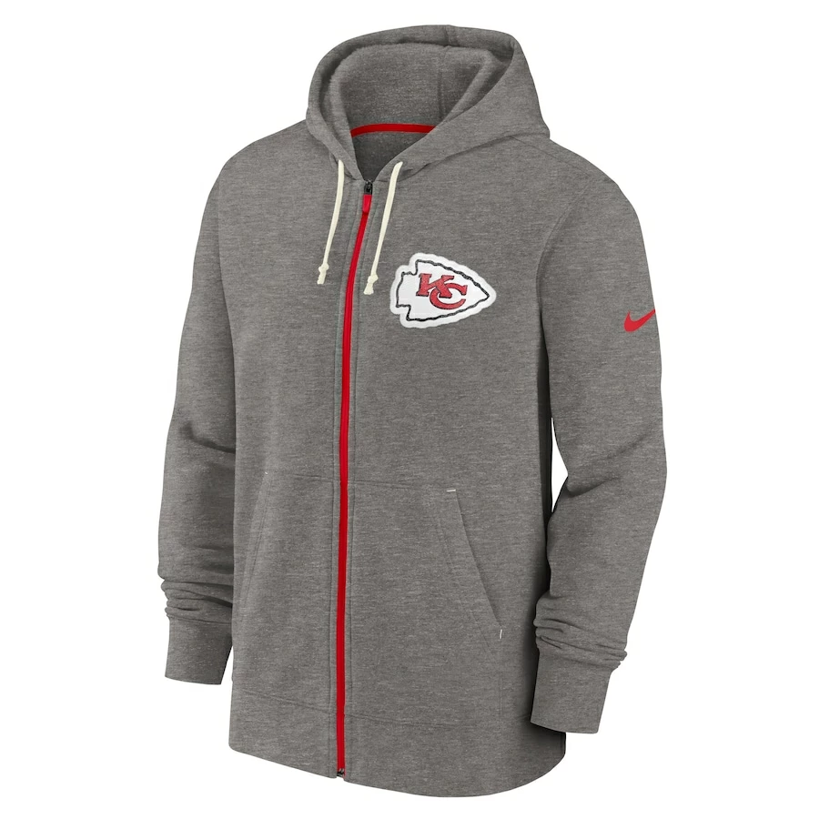Men’s Kansas City Chiefs Nike Heather Charcoal Historic Lifestyle Full-Zip Hoodie