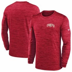 Enjoy added coverage and showcase your Kansas City Chiefs spirit with this Sideline Velocity Athletic Stack T-shirt from Nike. It features a bold Kansas City Chiefs graphic on the left chest and integrated Dri-FIT fabric that works to keep you cool and comfortable when you layer up. Plus, the crew neck offers a casual fit and feel that makes this tee a great grab for cooler game days.
