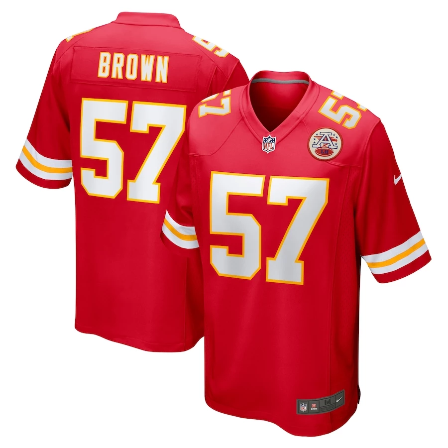 Get the look of a tried and true Kansas City Chiefs fan with this Orlando Brown jersey from Nike. The kickoff-ready Kansas City Chiefs colors and detailing will help to instantly elevate your selection of gear. You’ll love paying homage to your favorite NFL team and player with this spirited jersey.