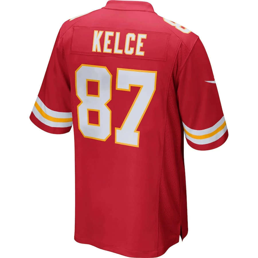 Rep the on-field look of your favorite Kansas City Chiefs player with this Travis Kelce Game jersey from Nike. Its heat-sealed name, numbers and team details provide a kickoff-ready aesthetic while also offering a comfortable, lightweight feel. Designed for everyday movement, this jersey has a versatile tailored fit and features mesh side panels for added ventilation as you celebrate every big play by the Kansas City Chiefs this season.