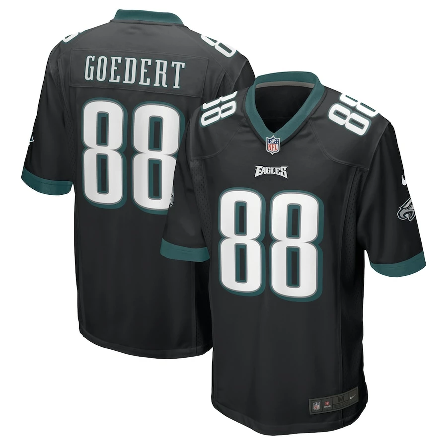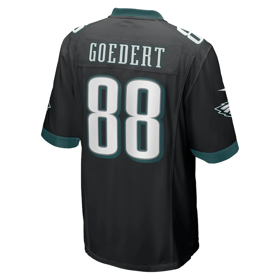 Rep the on-field look of your favorite Philadelphia Eagles player with this Dallas Goedert Game jersey from Nike. Its heat-sealed name, numbers and team details provide a kickoff-ready aesthetic while also offering a comfortable, lightweight feel. Designed for everyday movement, this jersey has a versatile tailored fit and features mesh side panels for added ventilation as you celebrate every big play by the Philadelphia Eagles this season.