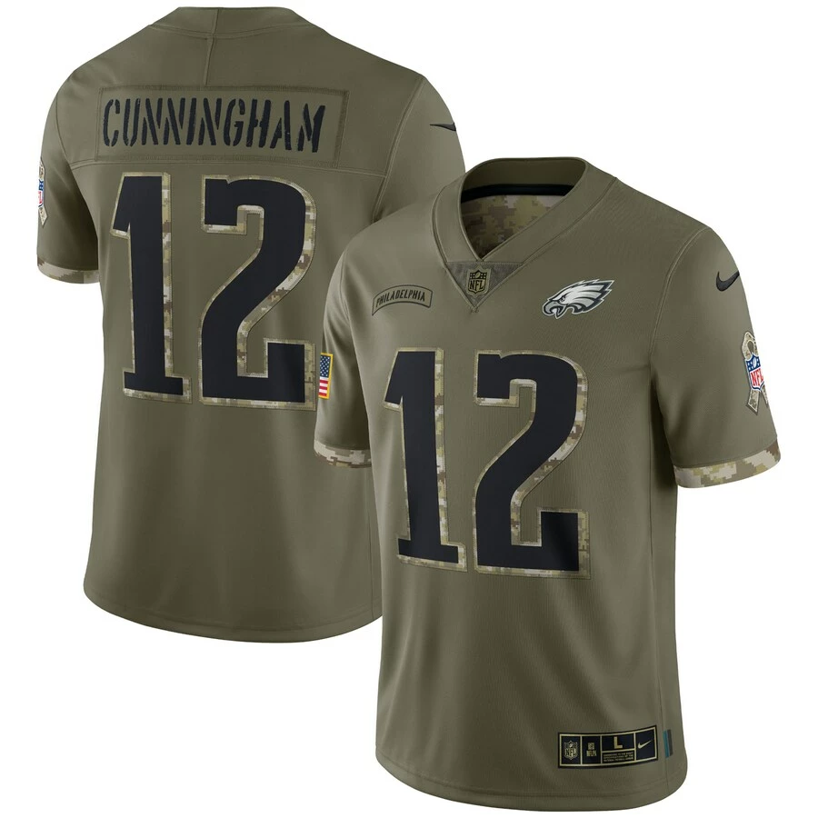 Honor our service members while supporting the Philadelphia Eagles with this 2022 Salute To Service Randall Cunningham Retired Player Limited Jersey. This Nike gear features a military-inspired color scheme, complete with an American flag and Salute To Service ribbon appliqué on the right sleeve. The crisp Philadelphia Eagles graphics and camouflage details will add some much-needed spirit to your game day collection. The NFL does not profit from the sale of Salute to Service products. Charitable contributions are awarded by the NFL Foundation to the NFL’s military nonprofit partners. For more information, please visit www.NFL.com/causes/salute.