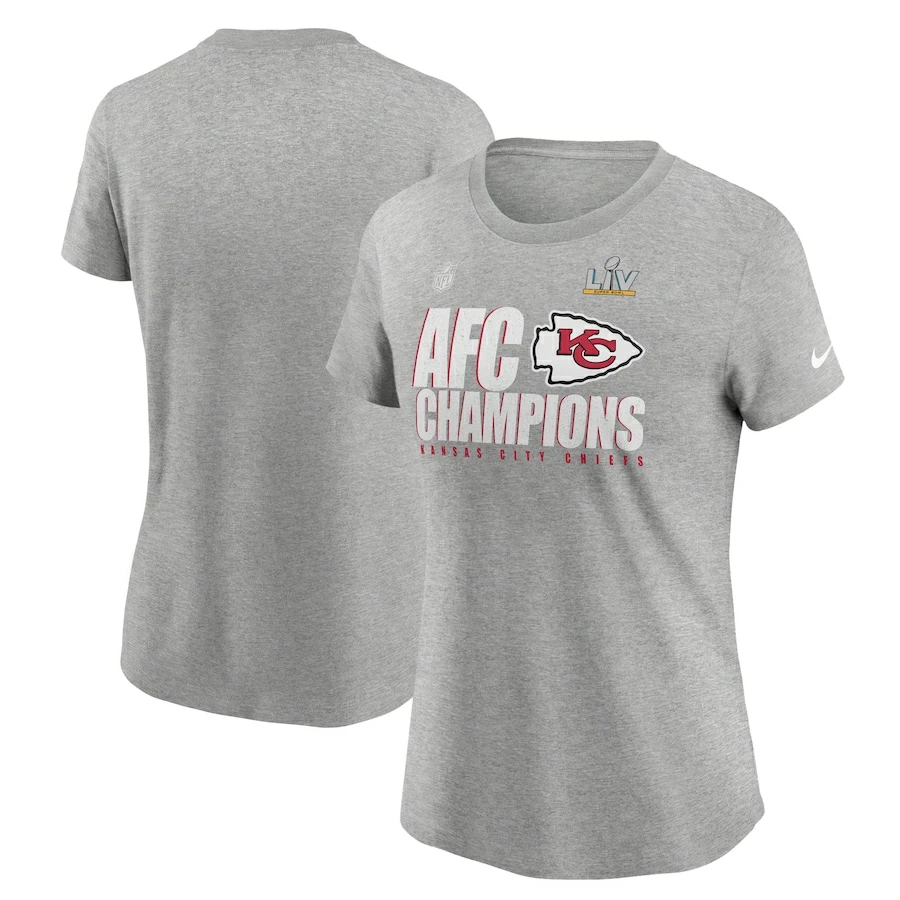 Women’s Kansas City Chiefs Nike Heather Gray 2020 AFC Champions Locker Room Trophy Collection T-Shirt