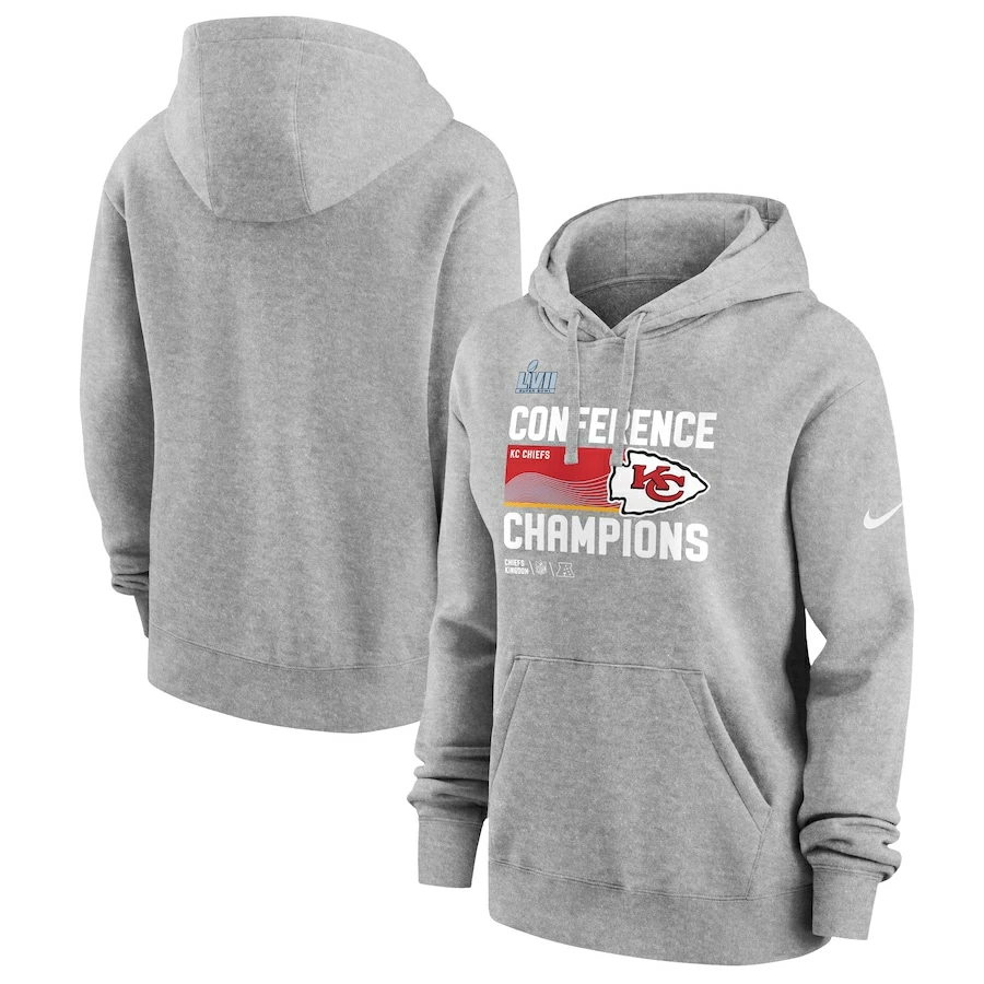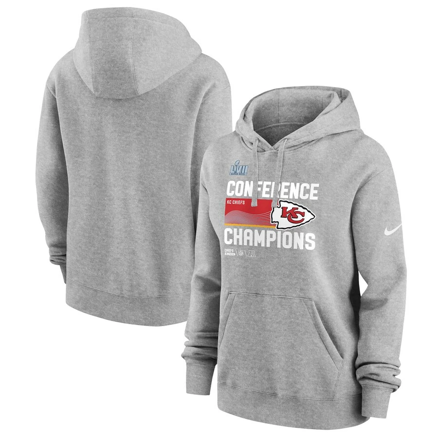 Women’s Kansas City Chiefs Nike Heather Gray 2022 AFC Champions Locker Room Trophy Collection Pullover Hoodie