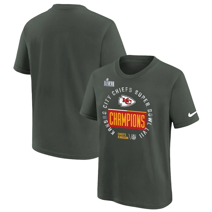 Youth Kansas City Chiefs Nike Anthracite Super Bowl LVII Champions Locker Room Trophy Collection T-Shirt