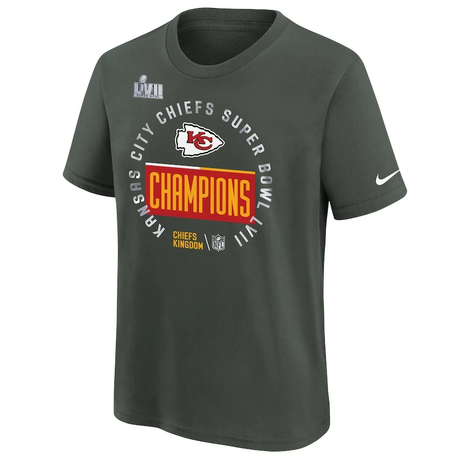 The 2022 NFL season was an electrifying ride, but the greatest part was seeing the Kansas City Chiefs cement their rightful place as the best team in the league! Help your kiddo celebrate the Super Bowl LVII Champions by grabbing them this Locker Room Trophy Collection T-Shirt from Nike. With bold SBLVII graphics matching those worn by the team, this commemorative gear is just what every young Kansas City Chiefs fan needs to celebrate this epic victory for years to come.