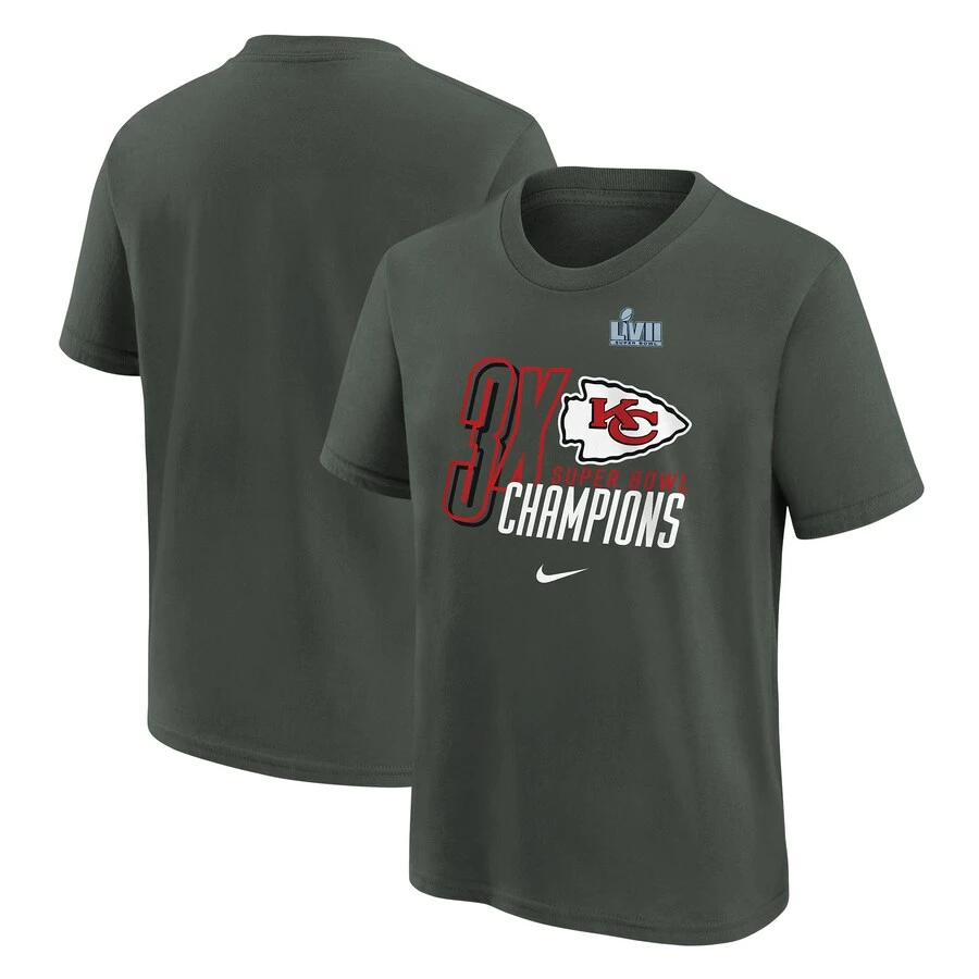 Youth Kansas City Chiefs Nike Anthracite Three-Time Super Bowl Champions T-Shirt