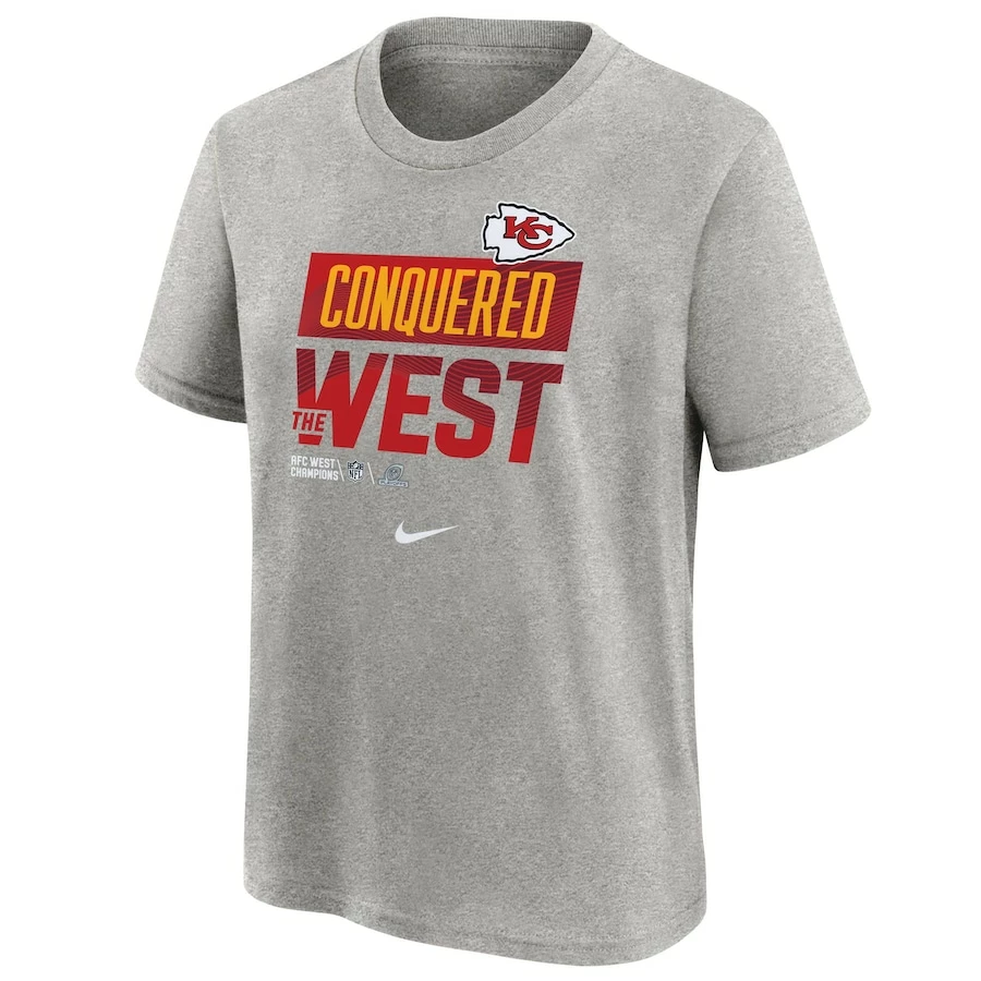 Youth Kansas City Chiefs Nike Heather Gray 2022 AFC West Division Champions Locker Room Trophy Collection T-Shirt