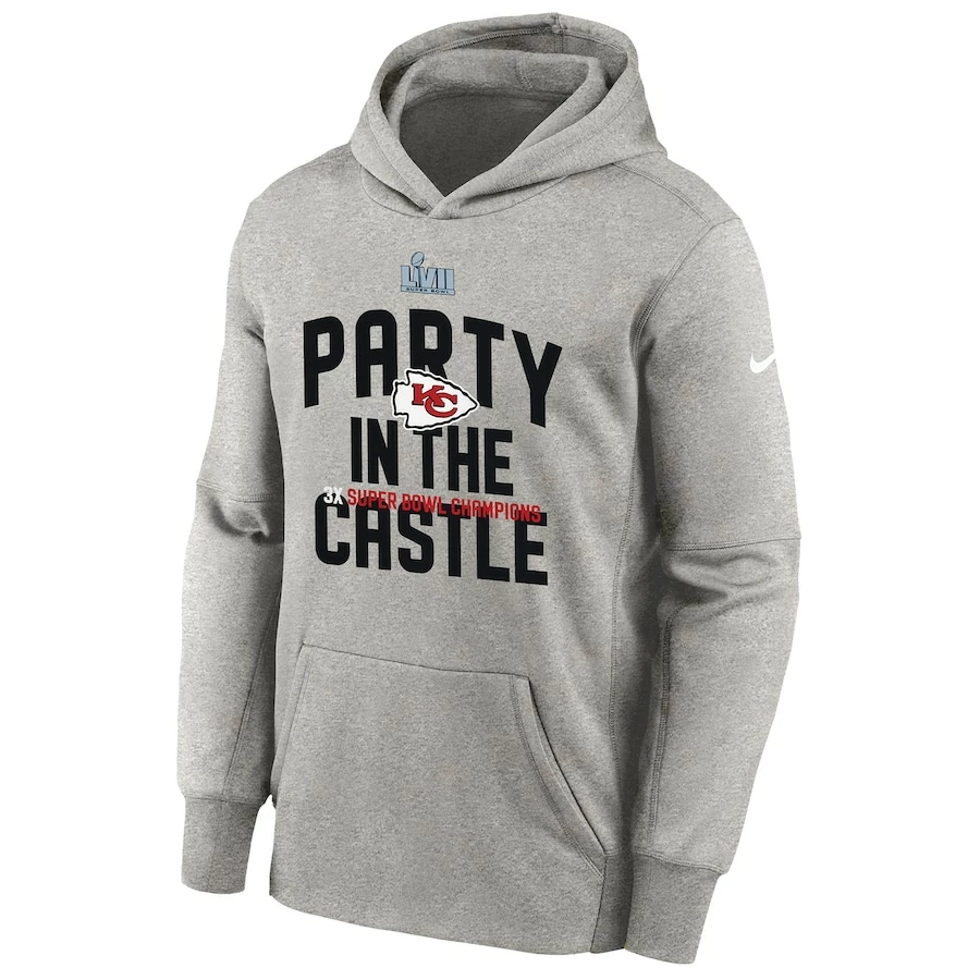 The 2022 NFL season was an electrifying ride, but the greatest part was seeing the Kansas City Chiefs cement their rightful place as the best team in the league! Help your kiddo celebrate the Super Bowl LVII Champions by grabbing them this Parade Pullover Hoodie from Nike. With bold SBLVII graphics, this commemorative gear is just what every young Kansas City Chiefs fan needs to celebrate this epic victory for years to come.